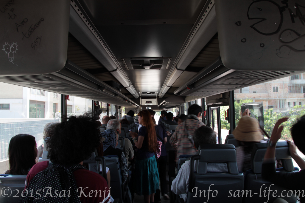 電車に揺られて少し経つと、アナウンスが流れます。実は直通ではなく、バスに乗り換えが必要との事。